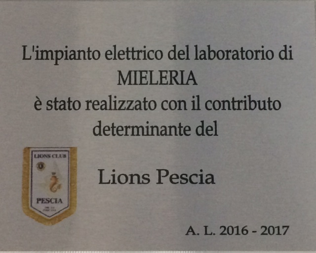 È stato inaugurato stasera il locale per la smielatura annesso al complesso dell’Oleificio dell’Istituto Agrario Anzilotti di Pescia, il cui impianto elettrico è stato completamente rifatto e messo a norma con il contributo generoso dell’Associazione Lions di Pescia. I lavori di ammodernamento, realizzati dall’ingegner Natucci, coronano un fortunato progetto di collaborazione tra l’Associazione Apicoltori Valdinievole e l’Anzilotti: la scuola ha messo a disposizione in comodato d’uso i locali, l’associazione si occuperà di formazione professionale per gli studenti delle terze e quarte nell’ambito dell’alternanza scuola-lavoro. Presenti all’inaugurazione il presidente in carica dei Lions di Pescia, dott. Stefano Latini, il Presidente dell’Associazione Apicoltori Marco Lippi, diversi apicoltori locali, soci dei Lions Pescia, la vicepreside dell’Anzilotti Elisa Romoli e il presidente del Consiglio di Istituto sig. Raffaele Bagnatori. Latini ha espresso la sua soddisfazione per il fatto che siano realizzate iniziative così utili e importanti con i contributi dei Lions, di cui ricorre quest’anno il centenario della fondazione, mentre Lippi ha ringraziato l’associazione, senza il patrocinio della quale i lavori sarebbero stati per gli apicoltori molto gravosi, e l’Istituto Anzilotti per la proficua collaborazione che ha dato negli anni ottimi risultati.